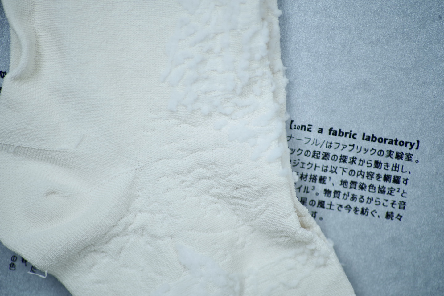 原画の構図再現とファブリックの耐久性を両立するため、naflは繰り返し試行錯誤し、高弾性ナイロン繊維を底糸として選び、編物全体の構造で精密な配合を調整。北斎の自由詩を体現する編み靴下を完成させた。⌣