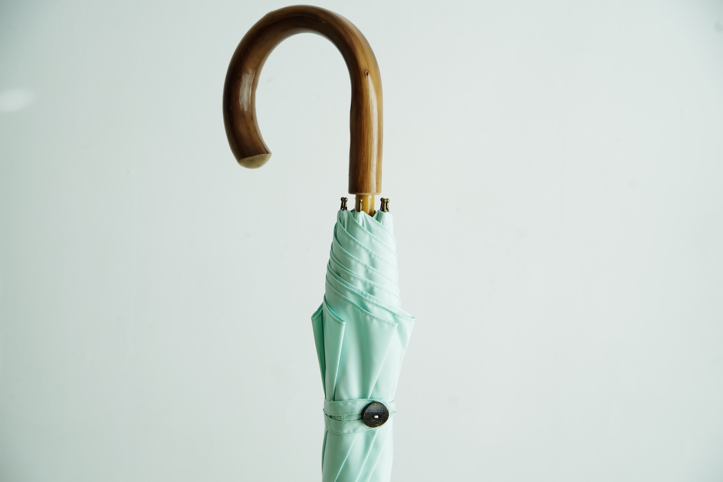 石突もハンドルと同じ栗の木、ネームボタンは水牛、と付属の素材の風合いがよく、質感にこだわる方にもきっと満足いただける傘です。
