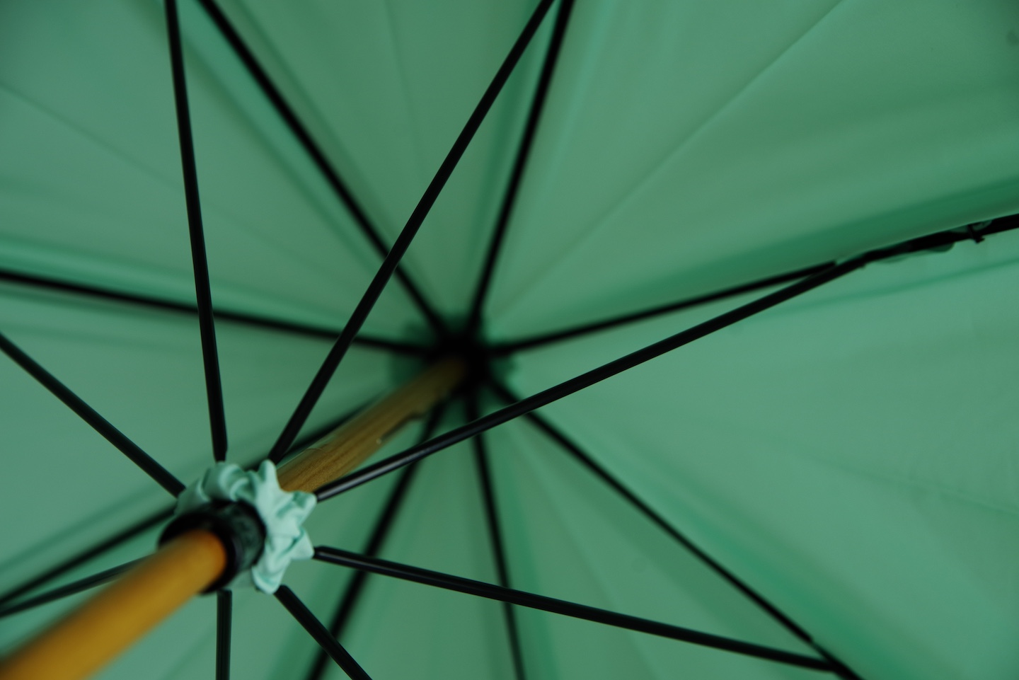 栗の木のハンドルが印象的な55cmの傘、目の詰まった細番手の生地は撥水性もよく、95%程度のUVカット効果も期待できます。