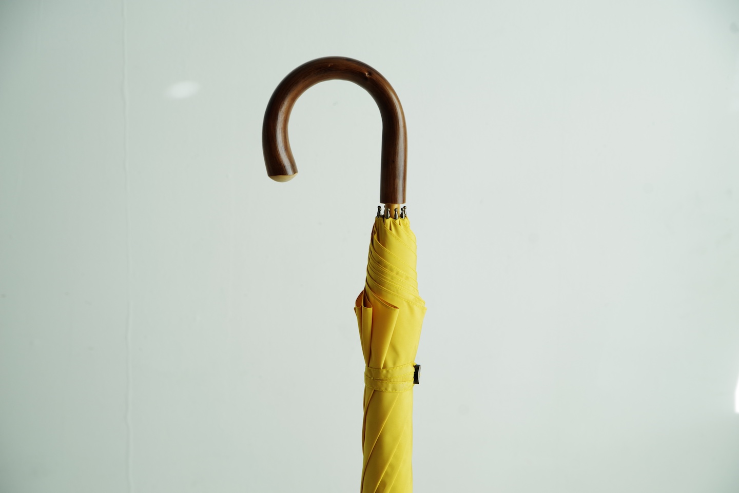 栗の木のハンドルが印象的な55cmの傘、目の詰まった細番手の生地は撥水性もよく、95%程度のUVカット効果も期待できます。